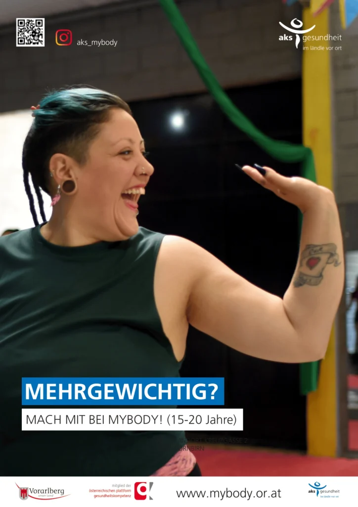 Auf Basis dieser Erkenntnisse wurde das vom Land Vorarlberg finanzierte Coaching-Programm myBody konzipiert und in den Regelbetrieb überführt. Das partizipative Gruppen-Coaching richtet sich an mehrgewichtige 15- bis 20-Jährige und stärkt ein positives Körperbild sowie die Gesundheitskompetenz – ohne Stigmatisierung und auf Augenhöhe. Ergänzend werden seit Oktober 2025 auch Schulworkshops zum Thema Körperbild und Social Media angeboten.