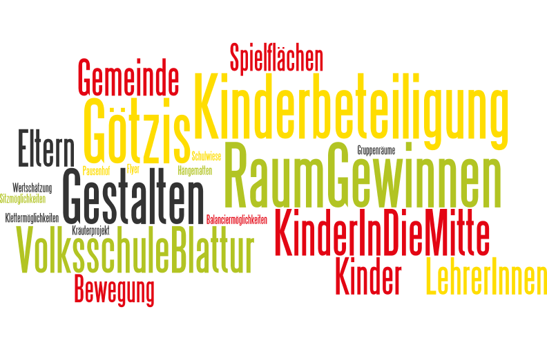 Die Kinder der VS Götzis bzw. des Kindergartens Blattur brauchen ganzjährig Spiel und Bewegungsflächen. Die Schulwiese soll umgestaltet und ganzjährig nutzbar werden. Die Planung erfolgte, auf Basis eines mit Kindern erstellten Modells, durch die Landschaftsplanerin Sylvia Spiegel Hutter, dem Ökologie Institut und dem Kollegium. Einige Sponsoren wurden bereits gefunden (z.B. Fa. Rotanso, Baufirma Wilhelm & Mayer), weitere werden gesucht. Partizipiert sind Kinder, Eltern, Sponsoren, Jugendliche, Gemeinde (Bauhof), Lehrpersonen und der Kindergarten.