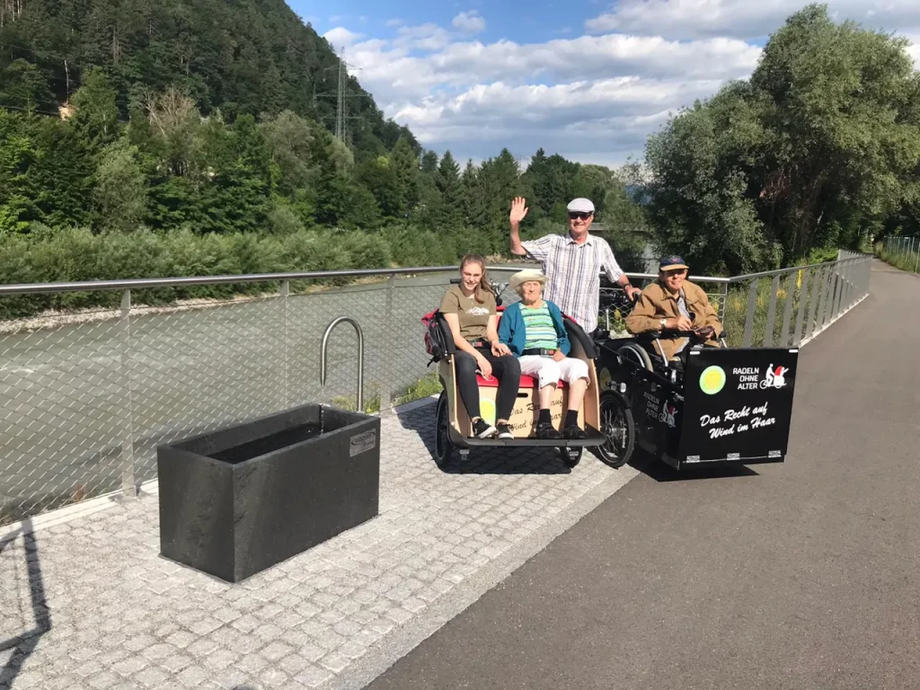 Radeln ohne Alter bietet Rikschaausflüge für Senior:innen bzw. Menschen die in ihrer Mobilität eingeschränkt sind. Ehrenamtliche Rikschafahrer:innen holen ihre Fahrgäste zuhause ab und fahren los. Die Ausfahrten führen manchmal ins Grüne, manchmal kreuz und quer durch die ehemalige Nachbarschaft. Wir ermöglichen Teilhabe, bieten Frischluftbriesen, wir hören zu, lachen viel, teilen unsere Zeit, denn Glück kann man zwar nicht kaufen, aber spenden.